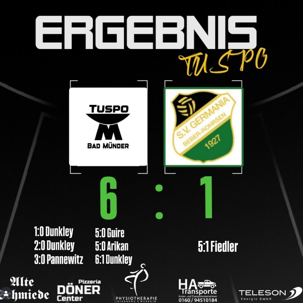 einer überragenden Leistung den SV Beber-Rohrsen, der aus der Kreisliga abgestiegen ist, mit 6:1 besiegen. Die Leistungen, die wir in den vergangenen Wochen vermissen lassen haben, konnten wir