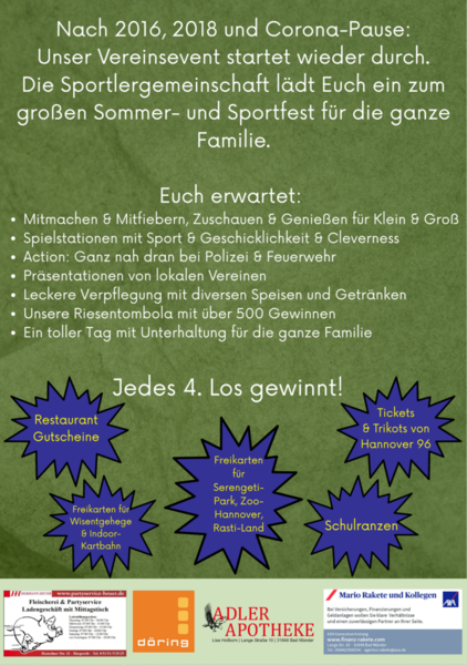 13 Uhr, steigt unser großes Sommerfest im Jahnstadion!
